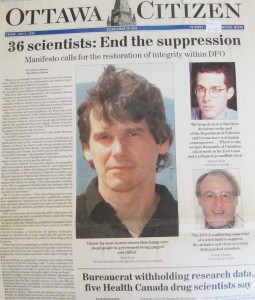 A few years after that I signed a scientists’ petition publicly calling on the Canadian government to stop censoring their own biologists; mine was but one name of many but I ended up on the front page of the Ottawa Citizen anyway, which got me a hushed phone call from a civil servant friend in Ottawa telling me not to expect anyone out there to answer my calls for the foreseeable future. (No skin off my nose: I’d already moved on to more overt forms of science fiction by then.)