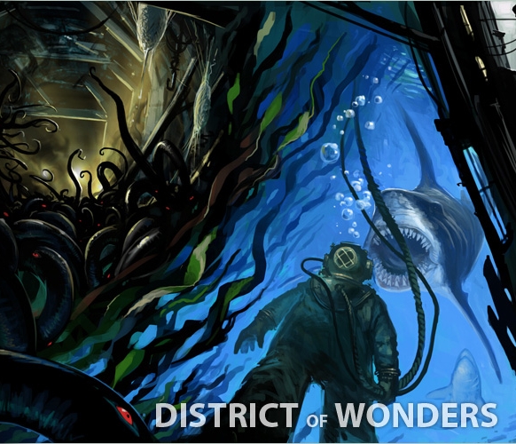 Now, Tony Smith has outgrown science fiction itself. He has spilled out into horror, and crime, and lurid classic pulp-adventure — and to contain all that extra ambition, he’s conjured up an online network called District of Wonders. Districts would be a better descriptor: it contains four separate provinces, peopled by folks performing stories in each genre. (Let me emphasize, we’re not talking squeaky-voiced nasal fan-boys here; Nicholas Camm, the actor Tony recruited for “Malak“, blew me away with his delivery. I can no longer read that story without hearing his voice in my head, just as I can no longer read “The Things” without hearing Kate Baker.)