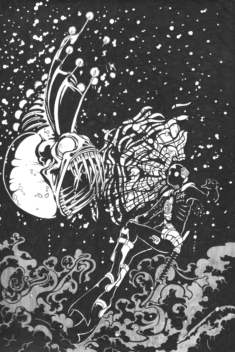 Moving forward, through time: some Blindsight illos from a— shall we say a range of aesthetic perspectives.